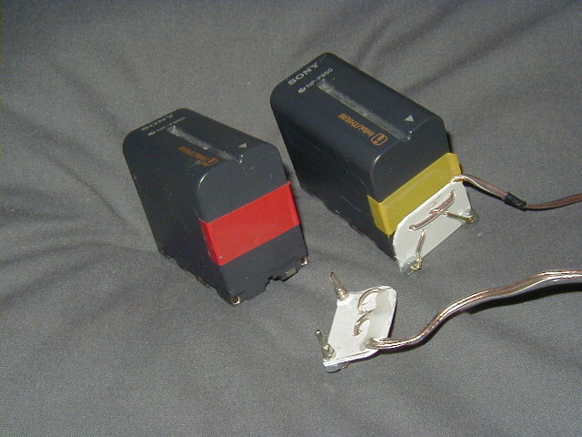 These clips are made with mini banana jacks from digikey (and some day there will be a part number and url here), a trip to the hardware store (to get nuts that fit the back of the banana jacks), hobby store plastic, 18ga stranded wire and a hypertonics connector on the end (www.hypertronics.com) - you should put what ever you use to get power in to what ever it is you want to power to on the end of yours.