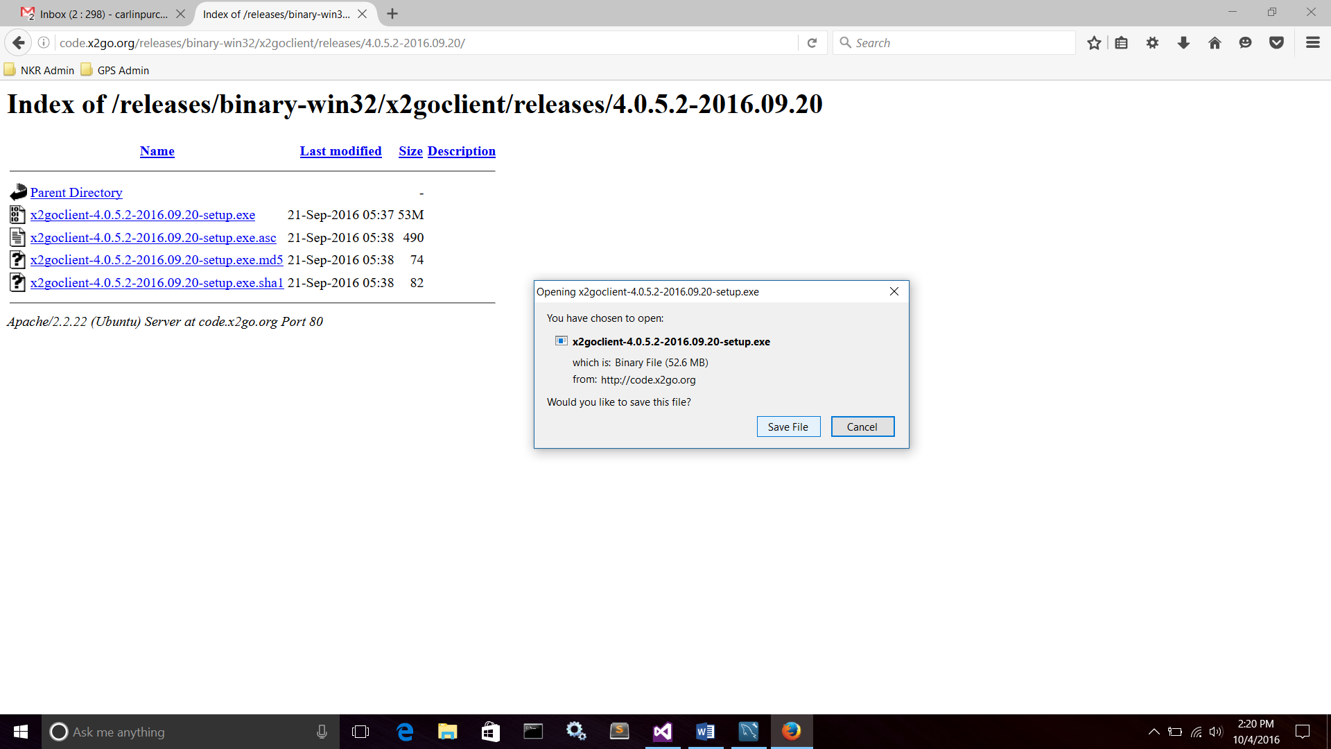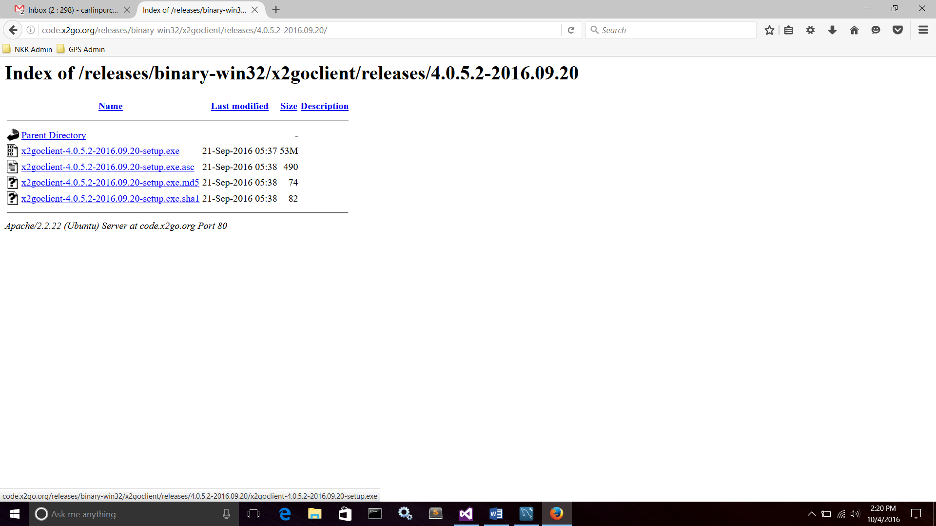 - Step 2: Click on the very first file (which as of October 4, 2016 was “x2goclient-4.0.5.2-2016.09.20-setup.exe”).